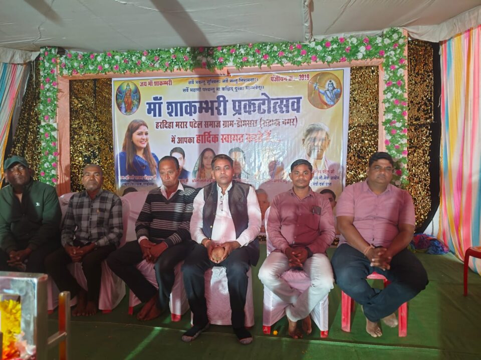 ग्राम पंचायत डोमसरा में हरदिहा मरार पटेल समाज द्वारा मां शाकंभरी जयंती श्रद्धा, उत्साह और सामाजिक समरसता के वातावरण में मनाई गई। कार्यक्रम का उद्देश्य मां शाकंभरी के जीवन संदेश—प्रकृति संरक्षण, अन्नदाता का सम्मान और समाज में सहयोग व एकता—को जन-जन तक पहुंचाना रहा।