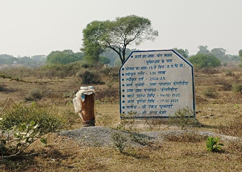 ग्राम पंचायत डोंगरीडीह में मुक्तिधाम के पास अंतिम संस्कार में शामिल होने वाले लोगों को पेयजल सुविधा उपलब्ध कराने के उद्देश्य से कराया गया बोर खनन कार्य अब सवालों के घेरे में है। 15वें वित्त आयोग (जिला पंचायत विकास योजना) के तहत वर्ष 2024-25 में स्वीकृत ₹1.00 लाख की राशि से यह कार्य कराया गया, लेकिन ज़मीनी हकीकत पूरी तरह इसके उलट है।